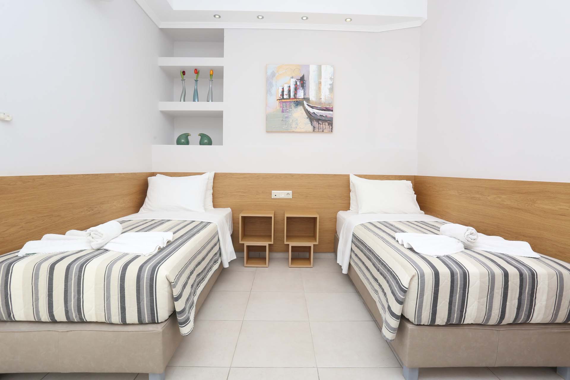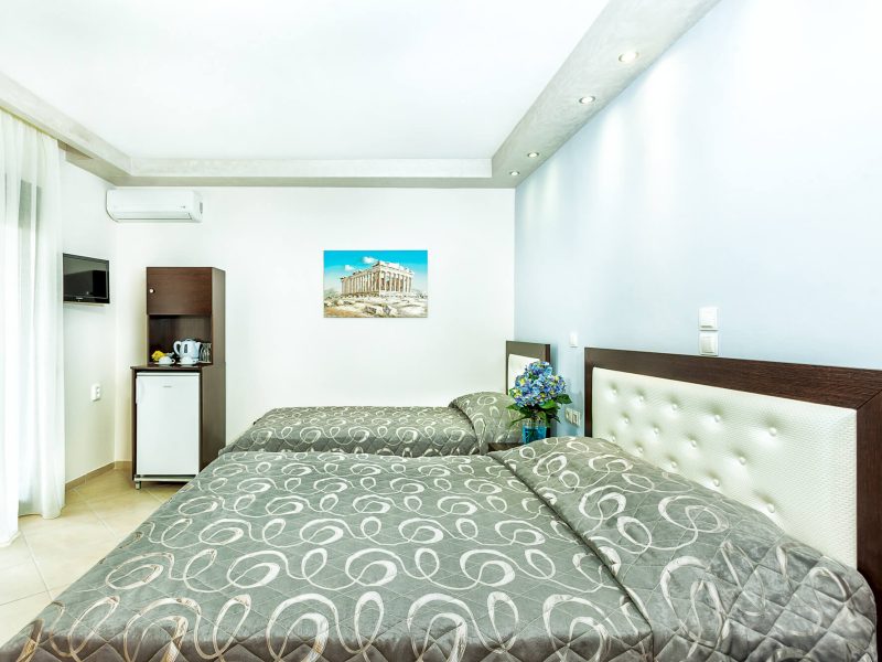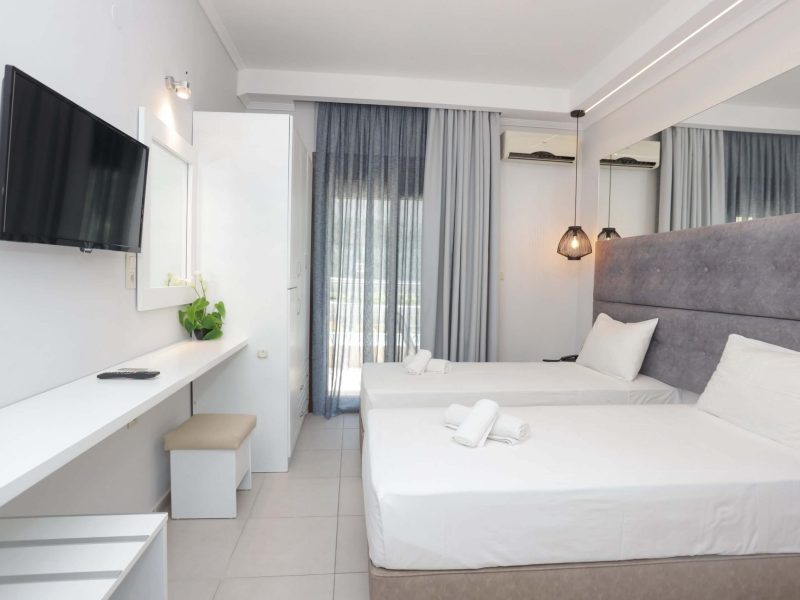 Хотел Anna Maria Paradise предлага двойни, тройни и фамилни стаи. Всички стаи са наскоро реновирани, те са модерено обзаведени и разполагат с: климатик, телевизор с плосък екран, телефон, кухня, сейф, баня, сешоар, балкон с прекрасен изглед към градините на хотела.