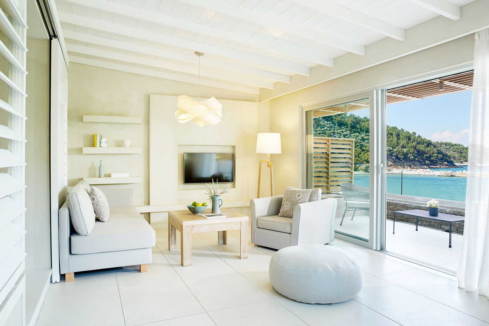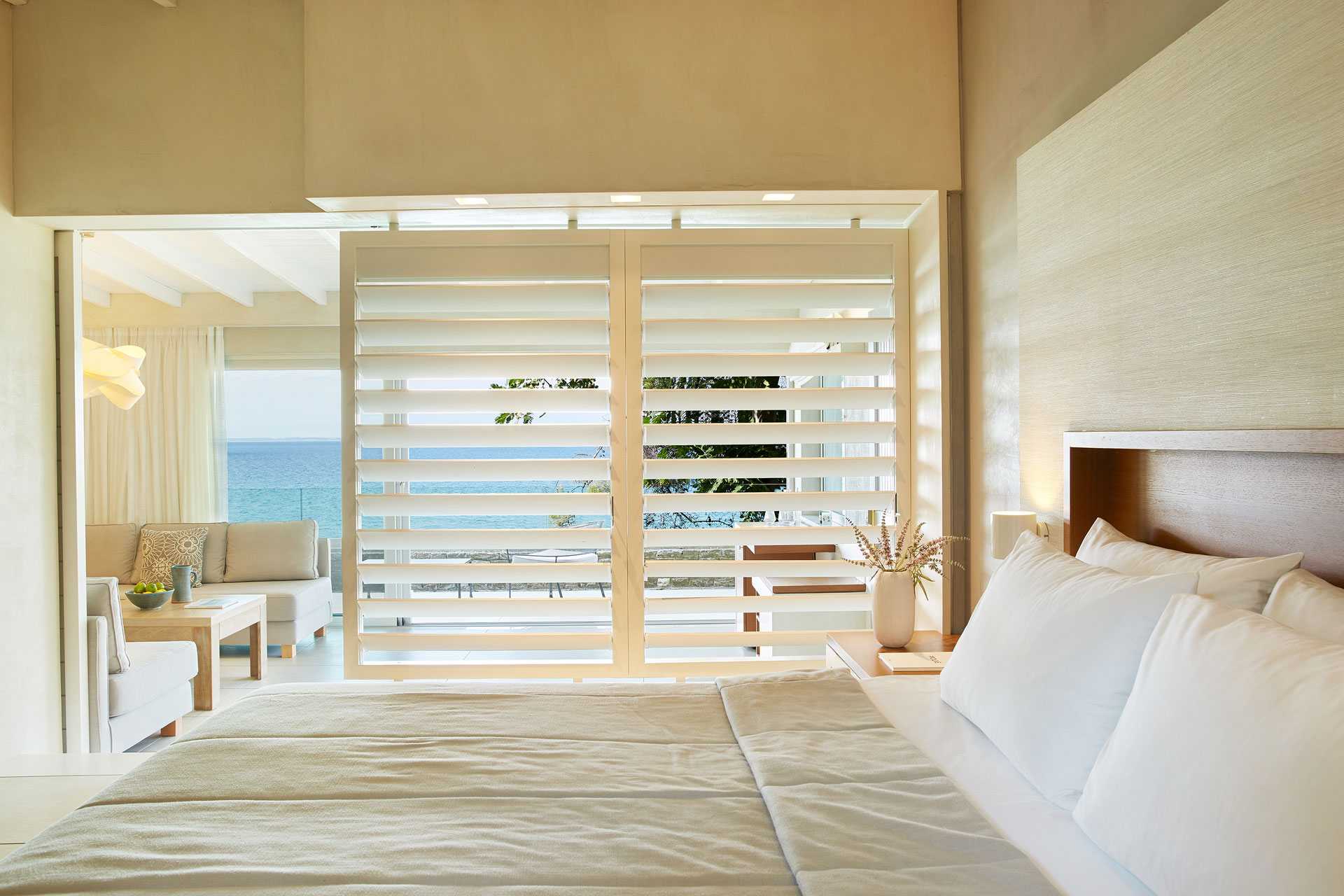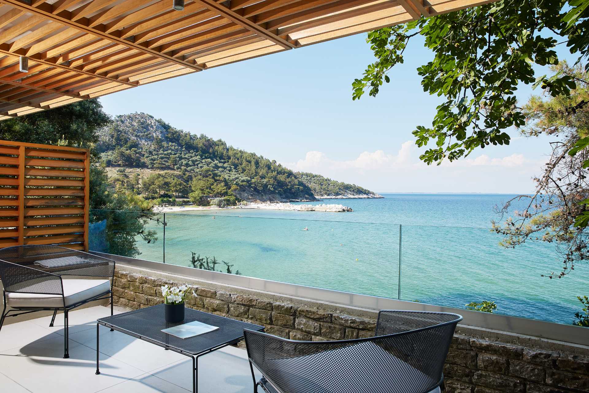Makryammos Bungalows 4*, намиращ се на красив залив със ситен бял пясък и изумрудени води, осигурява на почиващите всички необходими условия за тяхната незабравима лятна почивка.