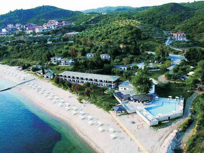 Хотелът е тип бунгало, разположен на хълмчета и борова гора, на първият ръкав на Халкидики – Касандра.