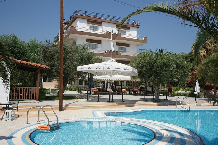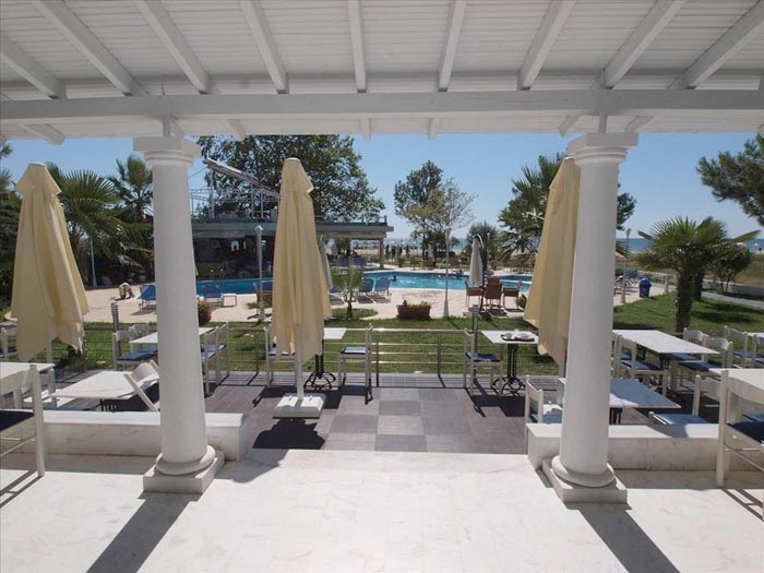 Услуги в хотела:Хотелът разполага с общо 35 стаи. Разположен е на вторият ръкав, на п-в Халкидики, Ситония. Оборудвани стаи: сателитна телевизия, климатик, хладилник, тераса във всяка стая, баня, тоалетна, сешоар, за всяка стая се полагат по 2 шезлона и 1 чадър.