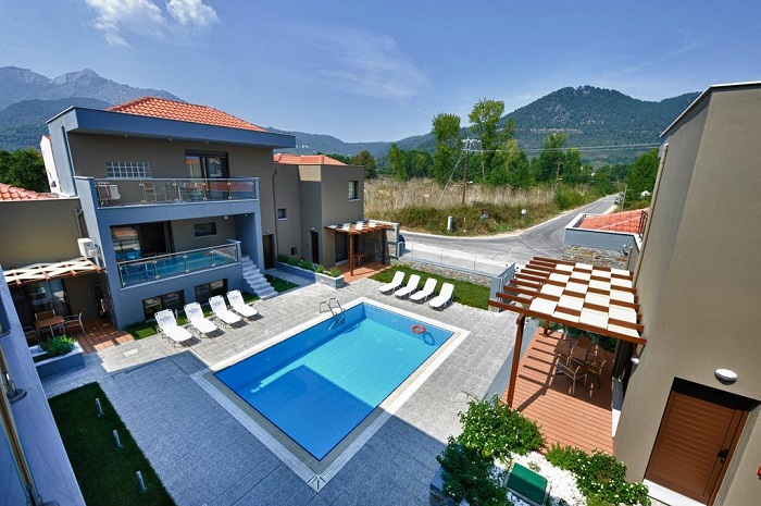 Този апартаментен комплекс се намира само на 40 метра от кристално чистите води на плажа Хриси Амудия. Апартаментите имат просторни тераси с изглед към буйната растителност наоколо и басейна.