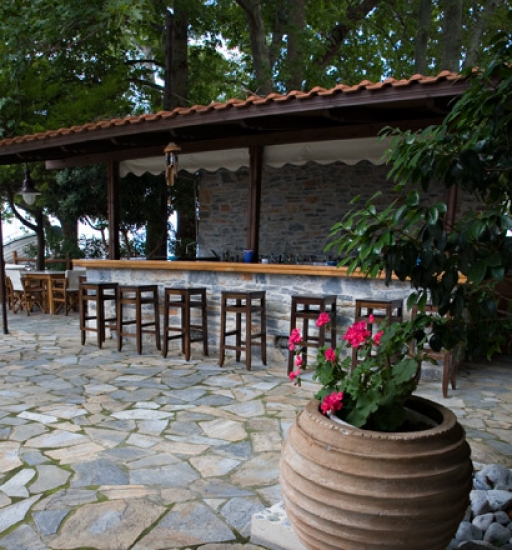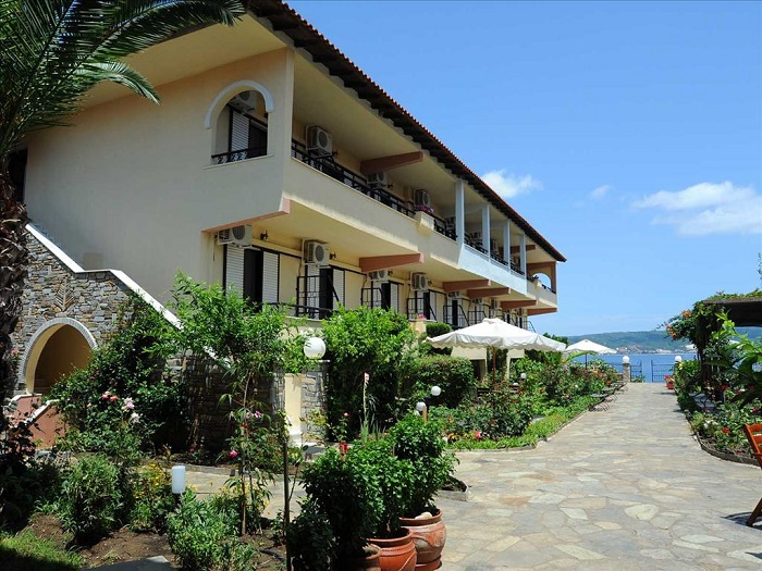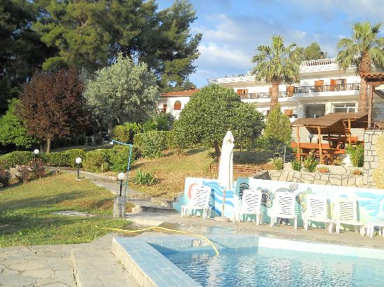 Малък уютен хотел с градина, който се намира в близост до морето със скалист бряг и изглед към Атонската Света гора.